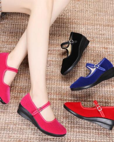 Women Mary Jane Buckle Pumps Suede Wedges Platform Shoes Ladies