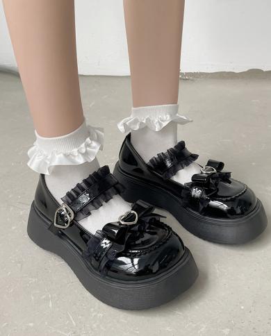 Sweet Lace Bowknot Lolita Shoes Women 2022 Heart Buckle Platform