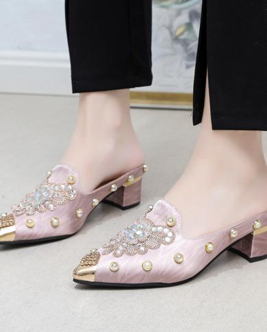 Women Flat Designer Shoes Backless Ladies Foxy Crystal Slides Pointed