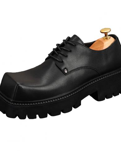 Square Toe Men Catwalk Shoes Retro Man Formal Shoes Thick