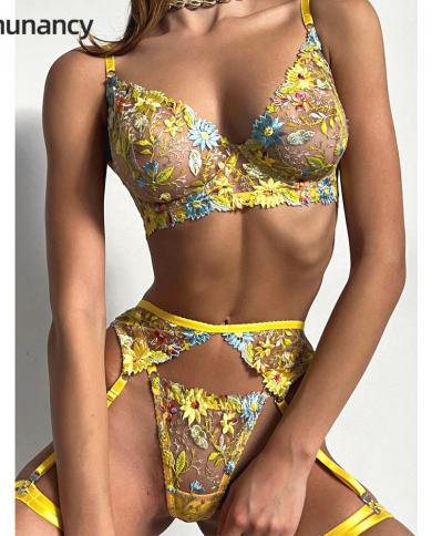 Yimunancy Embroidery Floral Lingerie Set Women Set Fancy