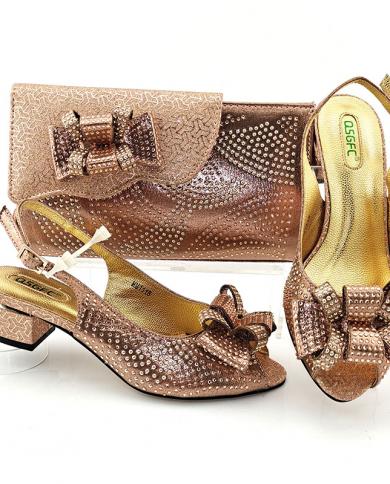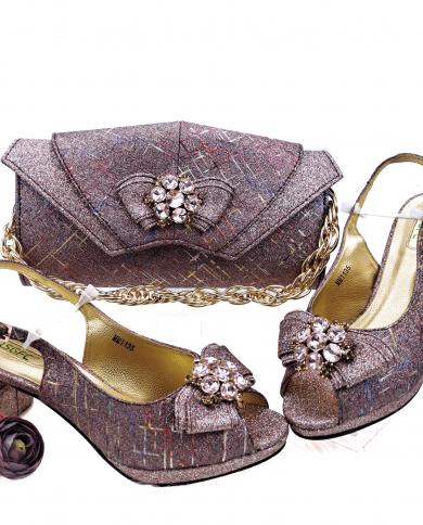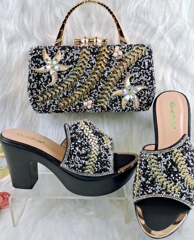 African Women Wedding Shoes And Bag Set High Heels Sequin