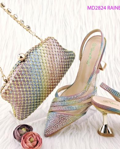 New Fashion Shoes And Bag Set With Rhinestones Italian Design