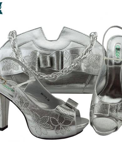 Silver Color Ladies Shoes Matching Bag Italian Designer Women High