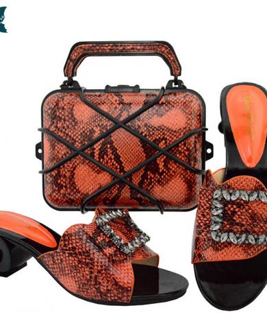 Newest African Women Matching Italian Design Orange Shoe And Bag