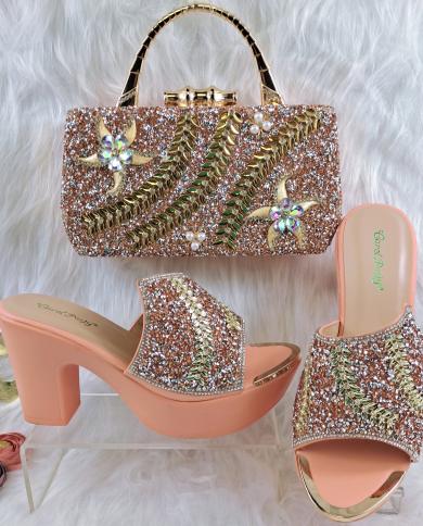 Qsgfc Peach Color Italian Elegant Shoes For Women Bag Set