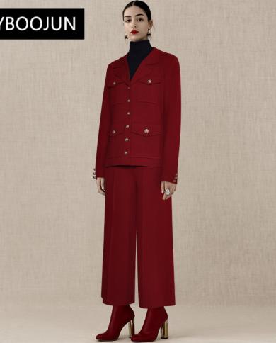 2022 Elegant High Quality Autumn Winter Red Knit Pants Set