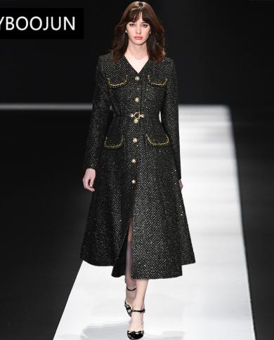 2022 Runway Long Trench Coat For Women Sparkling Sequin Tweed