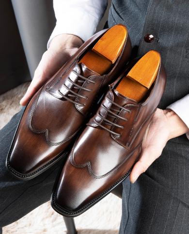 2023 Vintage Italian Formal Shoes Men Luxury Genuine Leather New