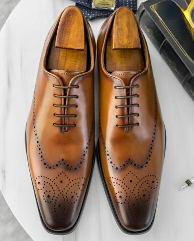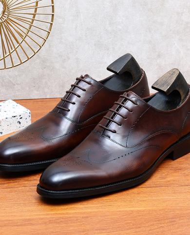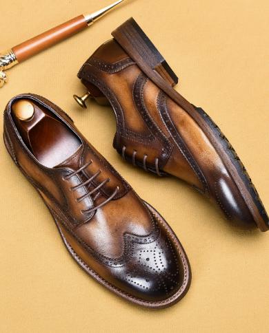 Vintage Mens Dress Shoes Luxury Brand Genuine Leather 2023 New
