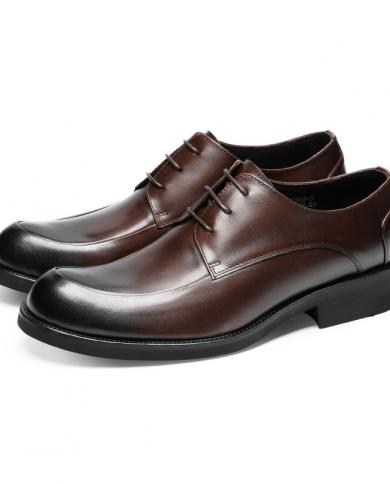 Mens Leather Formal Derby Shoes Luxury Genuine Leather Fashion 2023
