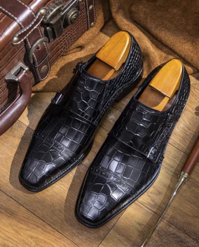 Mens Formal Leather Shoes Luxury Designer Genuine Leather Handmade Buckle