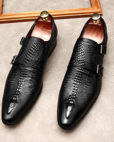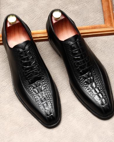 Italian Designer Dress Shoes Men Genuine Leather Fashion Crocodile Pattern