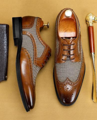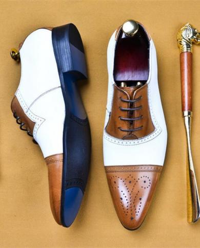 Brogue Shoes Men Shoes Pu Color Matching Classic Business Casual