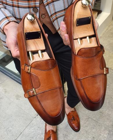 Monk Shoes Men Shoes Pu Color Matching Classic Personality Business