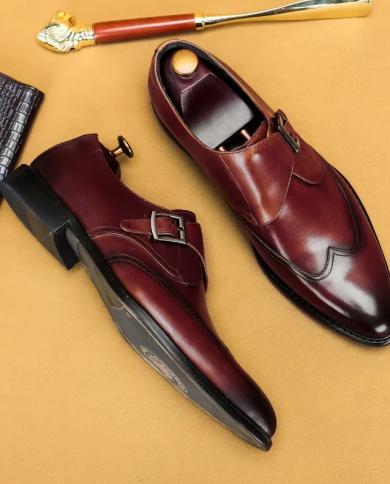 Monk Shoes Men Shoes Pu Solid Color Fashion Business Casual