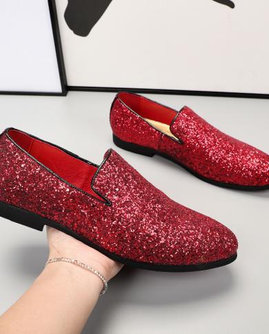Loafers Men Shoes Personality Solid Color Sequins Classic British Fashion