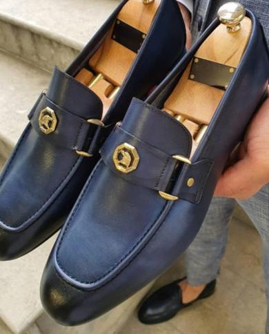 Men Loafers Blue Brown Metal Decoration Fashion Business Classic Slip