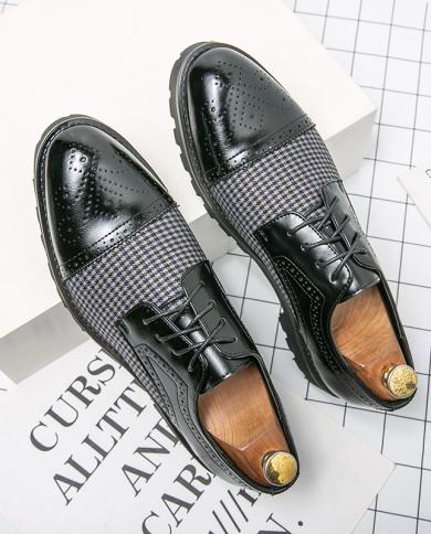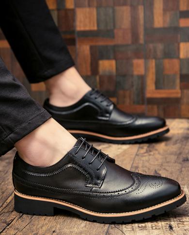 Thick Soled Leather Shoes High Quality Brogues Men Shoes Wedding