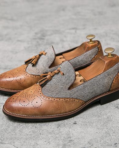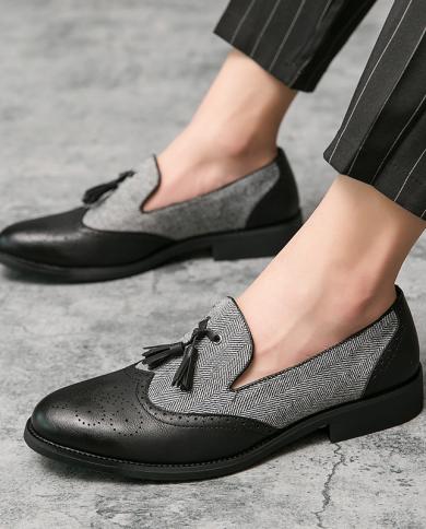 Brogue Loafers Mens Slip On Shoes Tassel Causal Leather Shoes