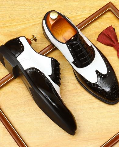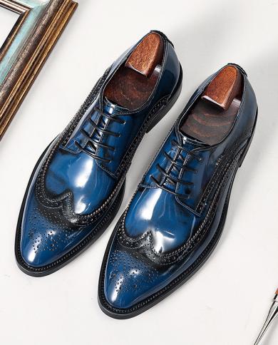 Black Blue Mens Dress Shoes Leather Wedding Brogues Shoes