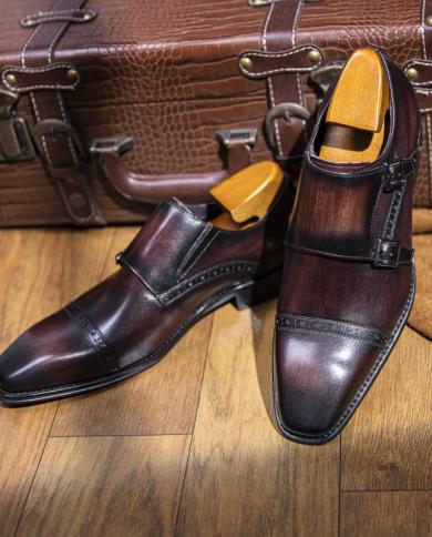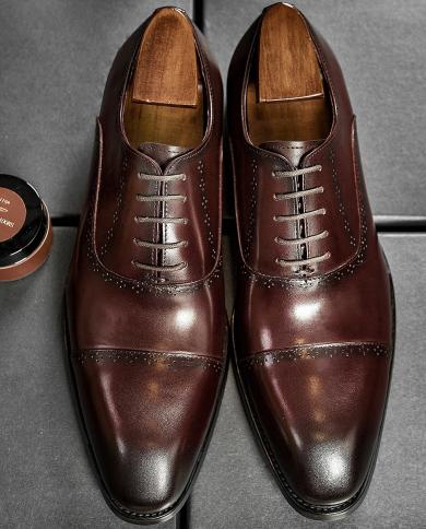 Luxury Vintage Carved Handamde Mens Dress Shoes Genuine Leather 2022