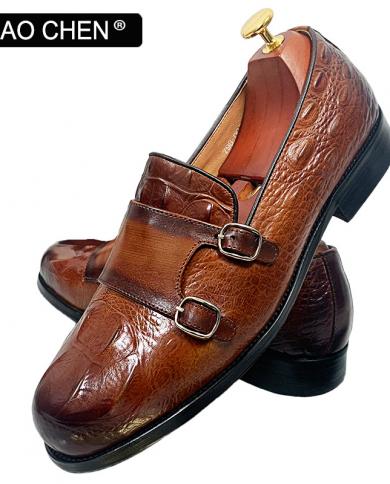 Double Monk Strap Shoes Men Leather Loafers Leather
