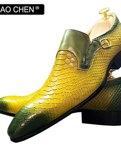 Luxury Brand Mens Loafers Monk Strap Shoes Black Green Wingtip