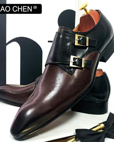 Italian Cow Leather Shoes Male Italian Shoes Monk Leather