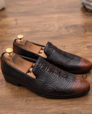 Leather Office Wedding Loafers Shoes Crocodile Italian Loafers Men