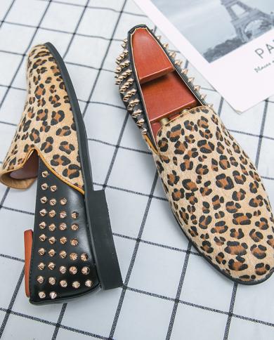 Leopard Men Loafer Slip On Designer Rivets Stud Shoes Punk