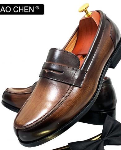Men Genuine Leather Brown Loafer Shoes Business Casual Brown