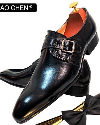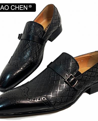 Daochen Men Leather Shoes Black Brown Monk Strap Loafers Shoe