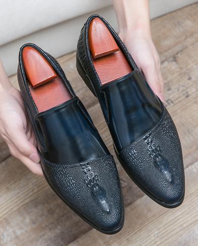 Luxury Men Leather Shoes Crocodile Pattern Waterproof Mens Business Dress