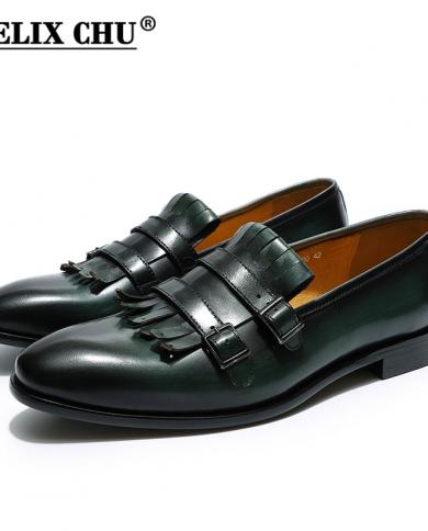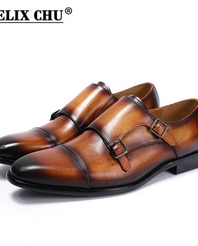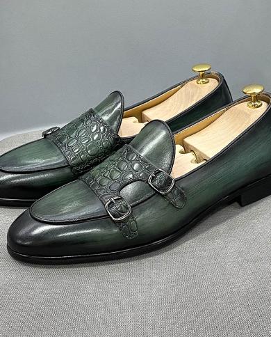 Handmade Mens Dress Shoes Double Buckle Monk Strap Genuine Leather