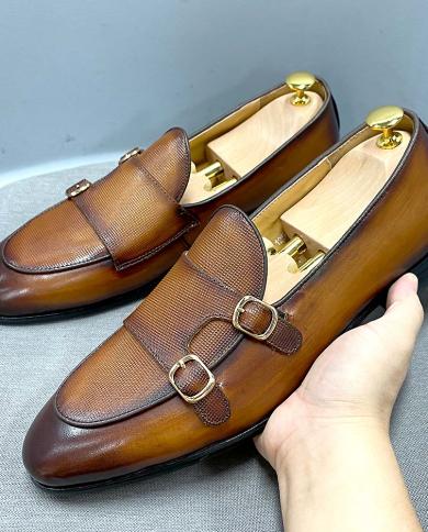Summer Shoes Mens Loafers Real Leather Monk Strap Slipons Wedding