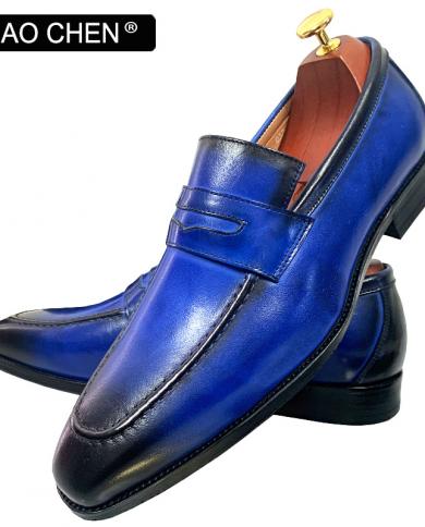Men Shoes Luxury Brand Loafer Leather Blue Loafers Men