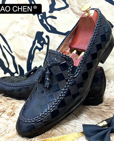 Luxury Brand Men Genuine Leather Shoes Blue Black Tassel Loafers