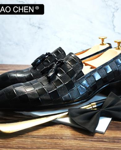 Luxury Brand Men Leather Shoes Black Brown Tassel Loafers Slip