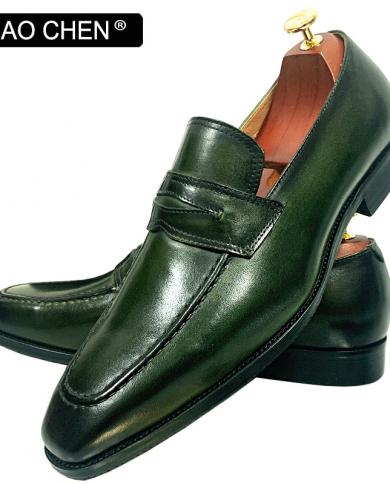 Green Shoes Men Slip Loafers Mens Green Penny Loafers