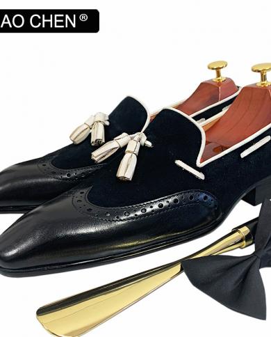 Luxury Brand Men Leather Suede Shoes Black Brown Tassel Loafers
