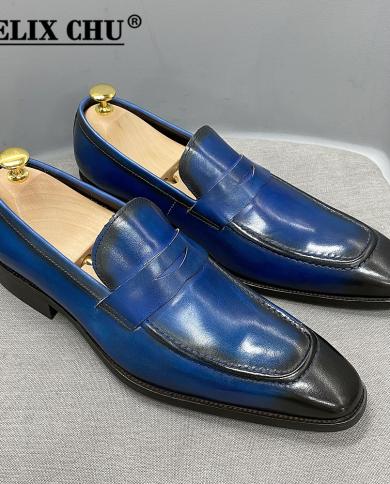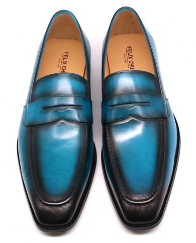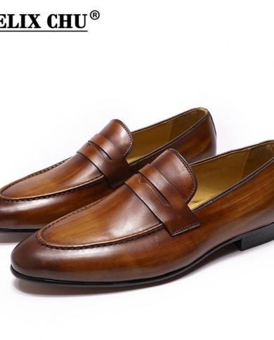 Felix Chu Mens Penny Loafers Leather Shoes Genuine Leather Elegant