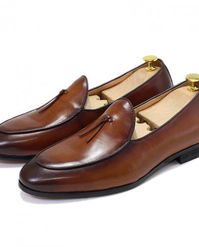 Size 613 Mens Tassel Loafers Handmade Genuine Leather Formal Shoes