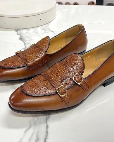 Luxury Monk Strap Shoes Men Monk Shoes Man Brown