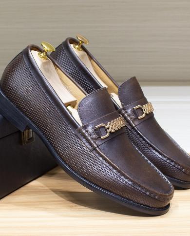 Mens Loafers Genuine Leather Classic Metal Chain Slip On Casual