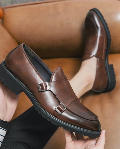 New Brown Loafers Men Double Buckle Monk Shoes Brown Men