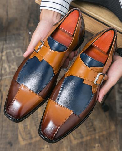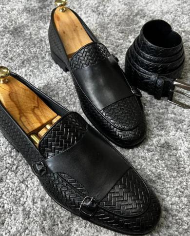 New Loafers Men Double Buckle Monk Shoes Black Men Dress