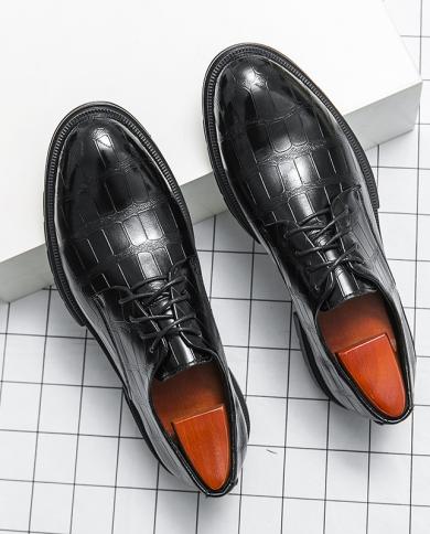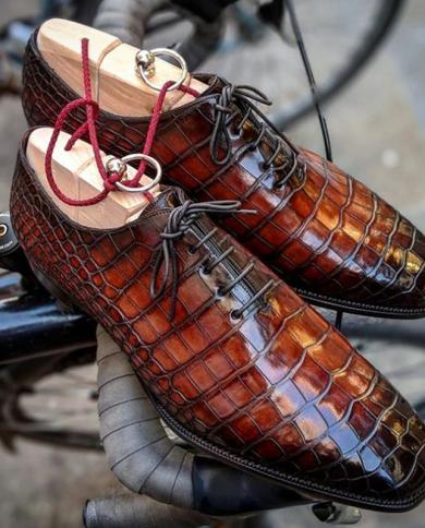 New Brown Men Derby Shoes Crocodile Pattern Breathable Lace Up