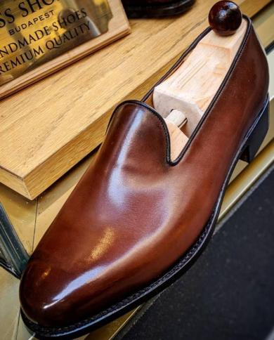 Mens Red Leather Loafer Shoes Casual Brown Loafers Men