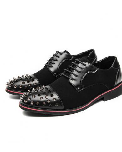 New Men Casual Shoes Laceup Breathable Rivet Black Handmade Men